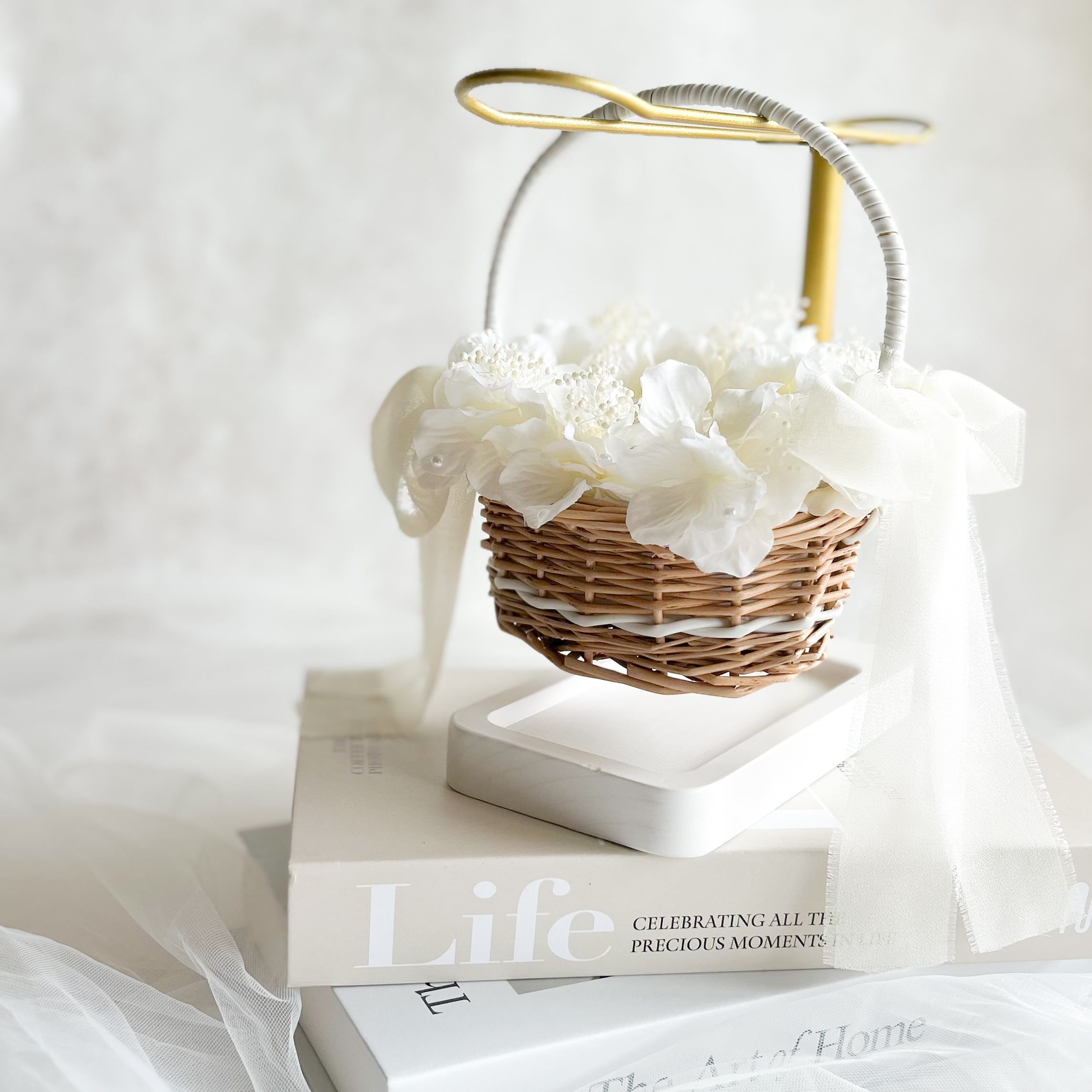 ふんわりと造花の紫陽花とプリザーブドフラワーの