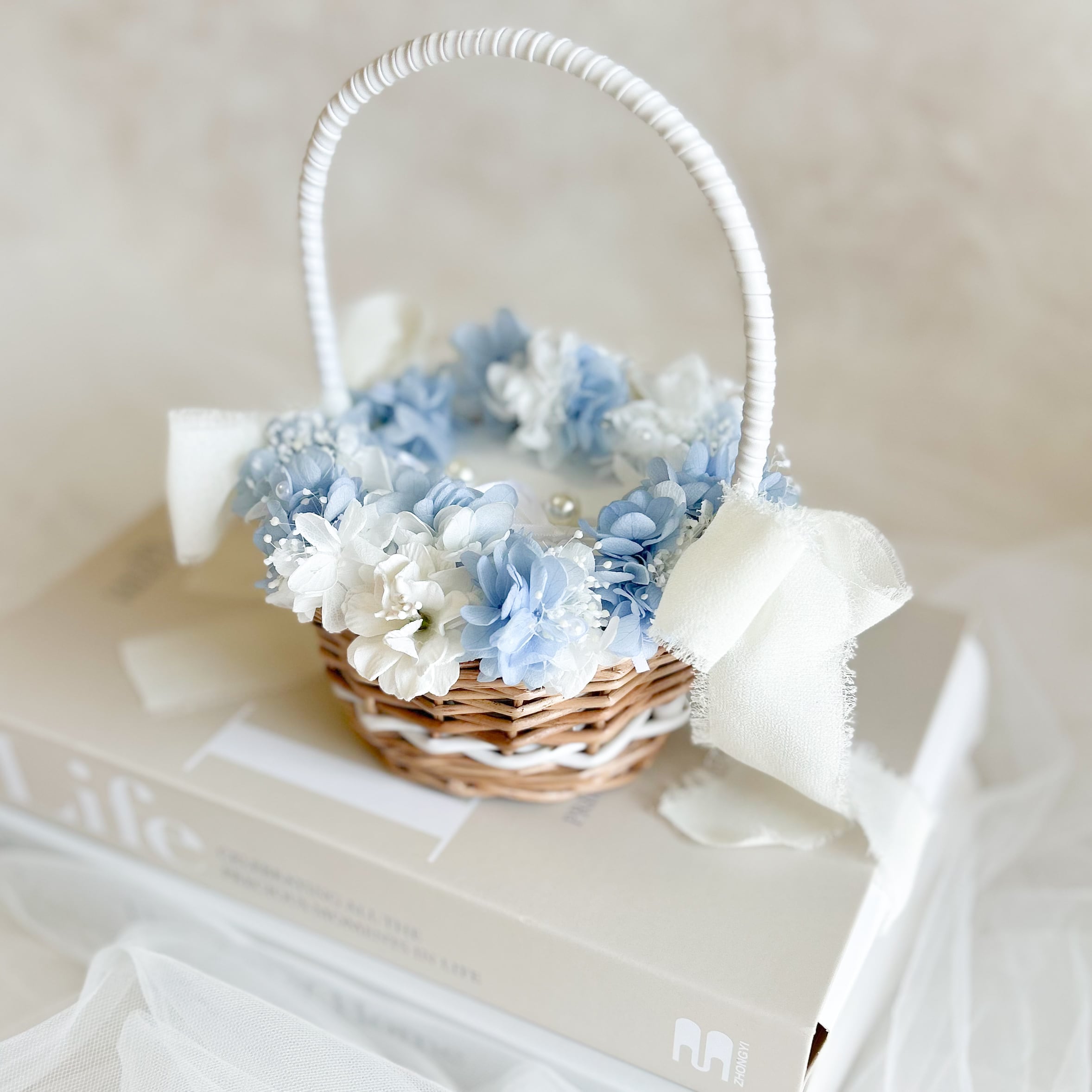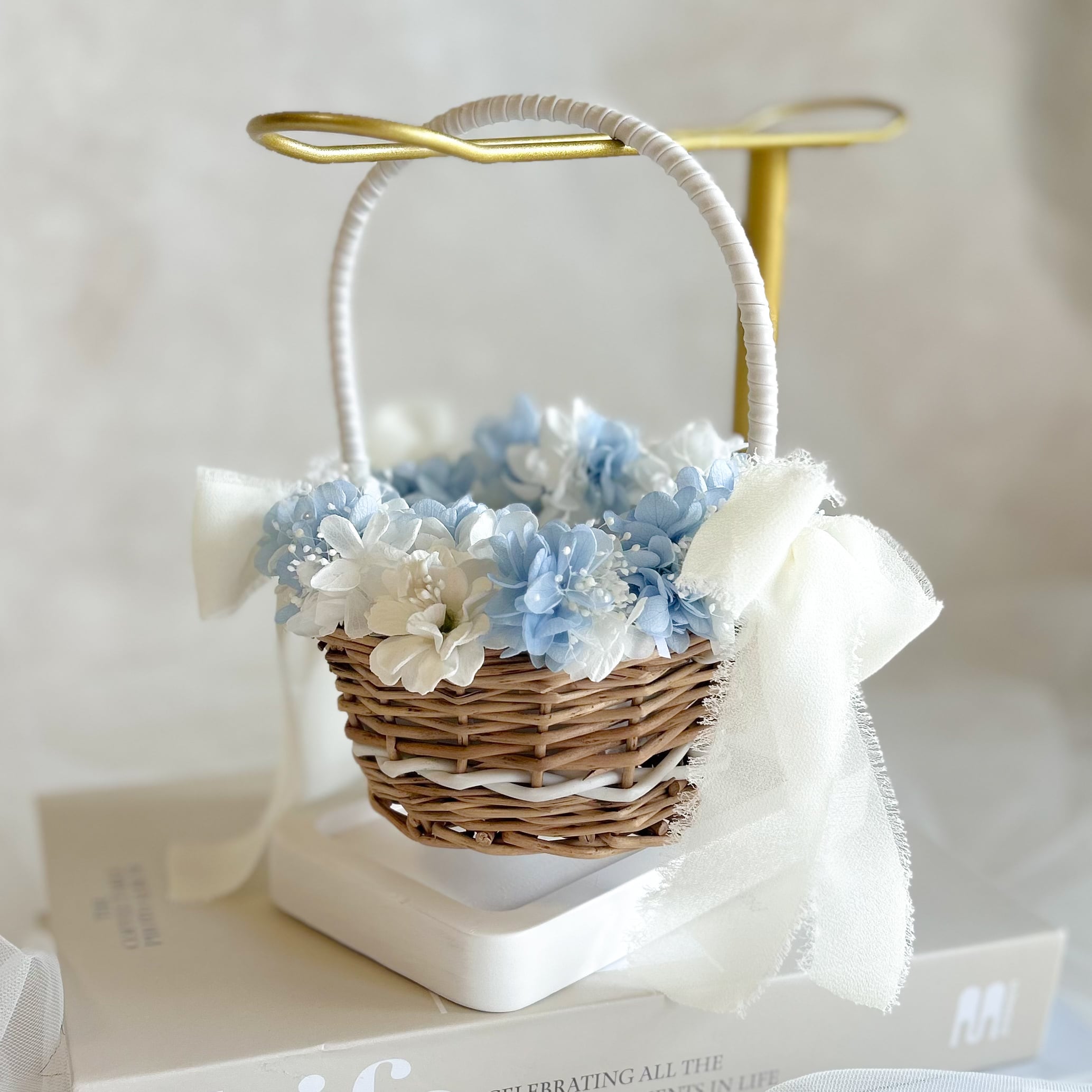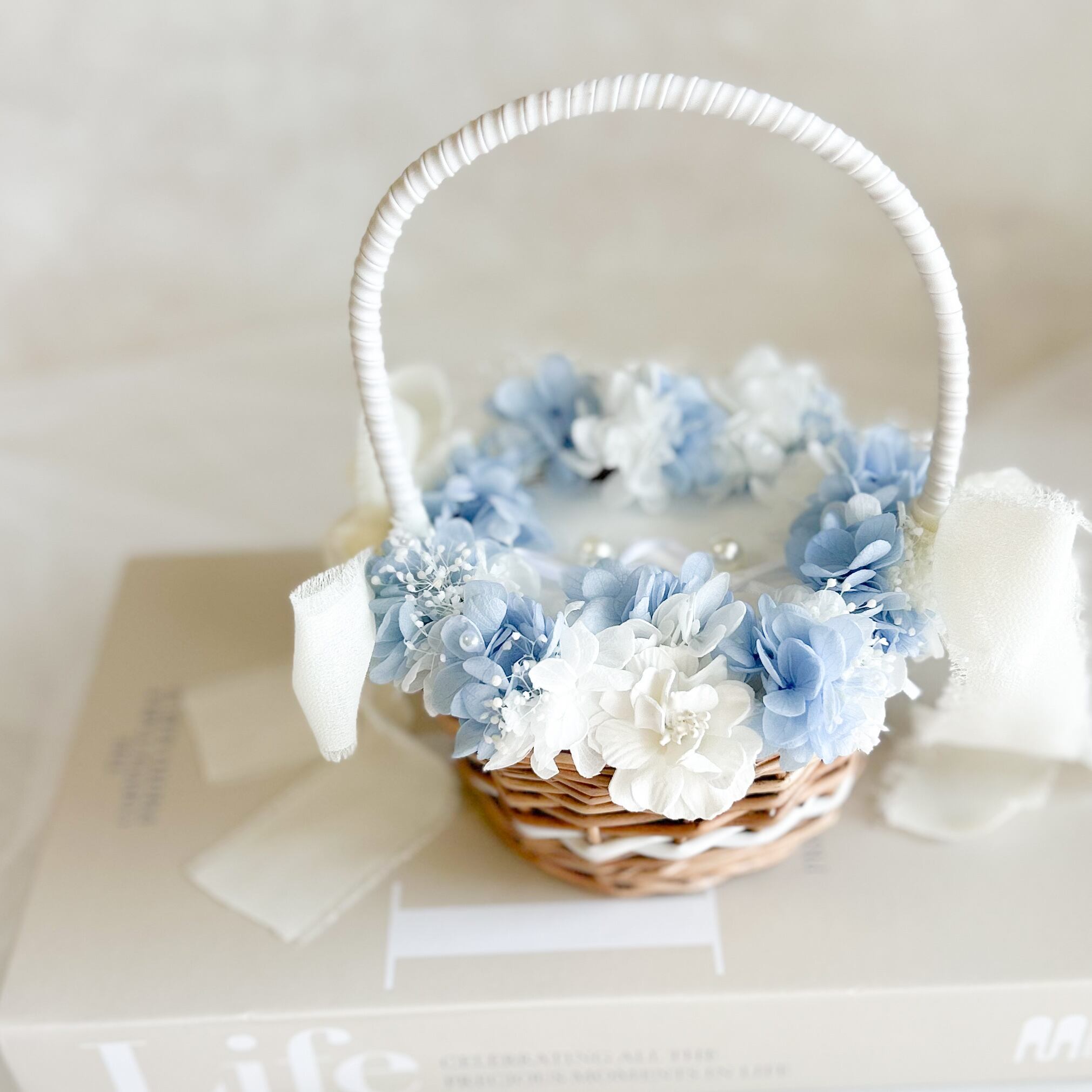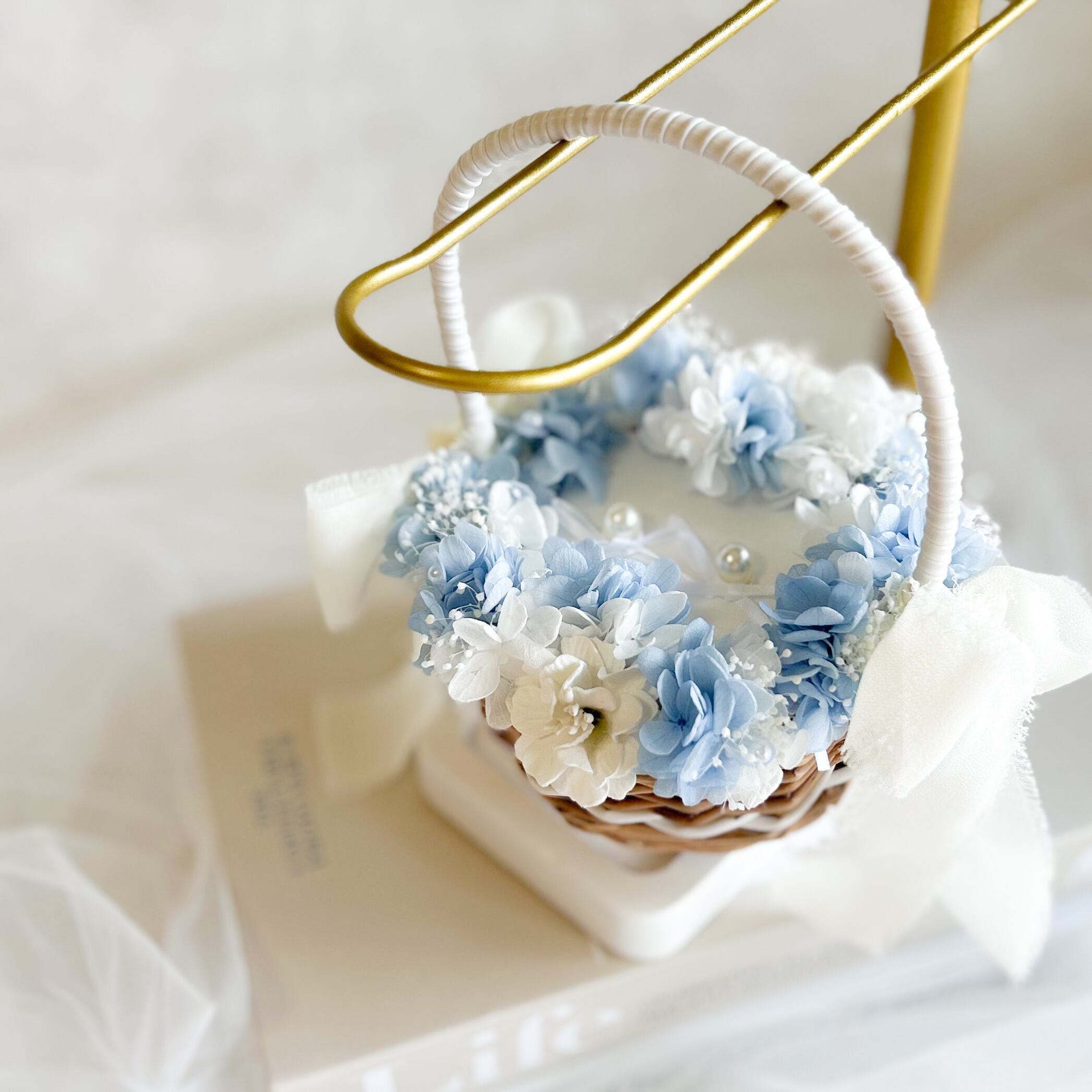 Circle blue ring pillow basket(プリザーブドフラワーメイン)