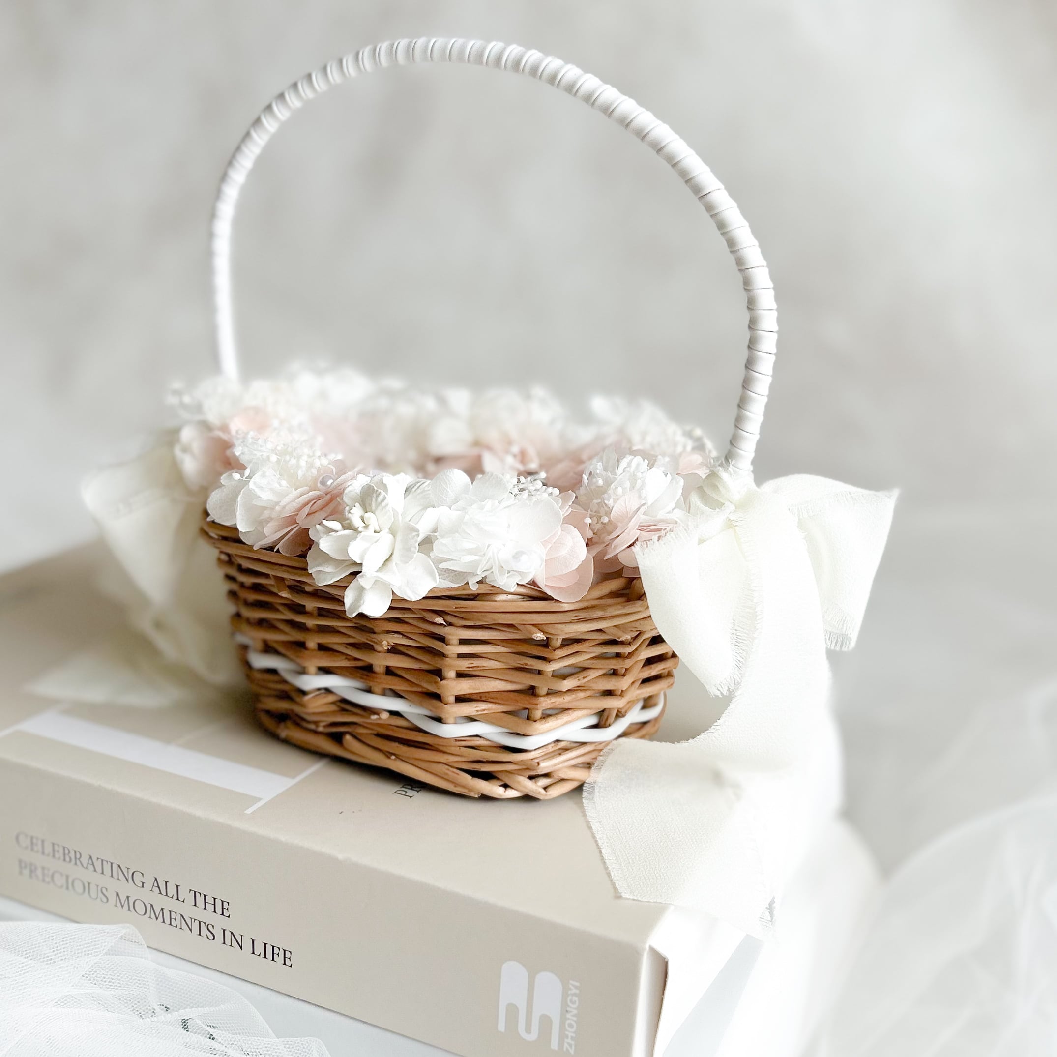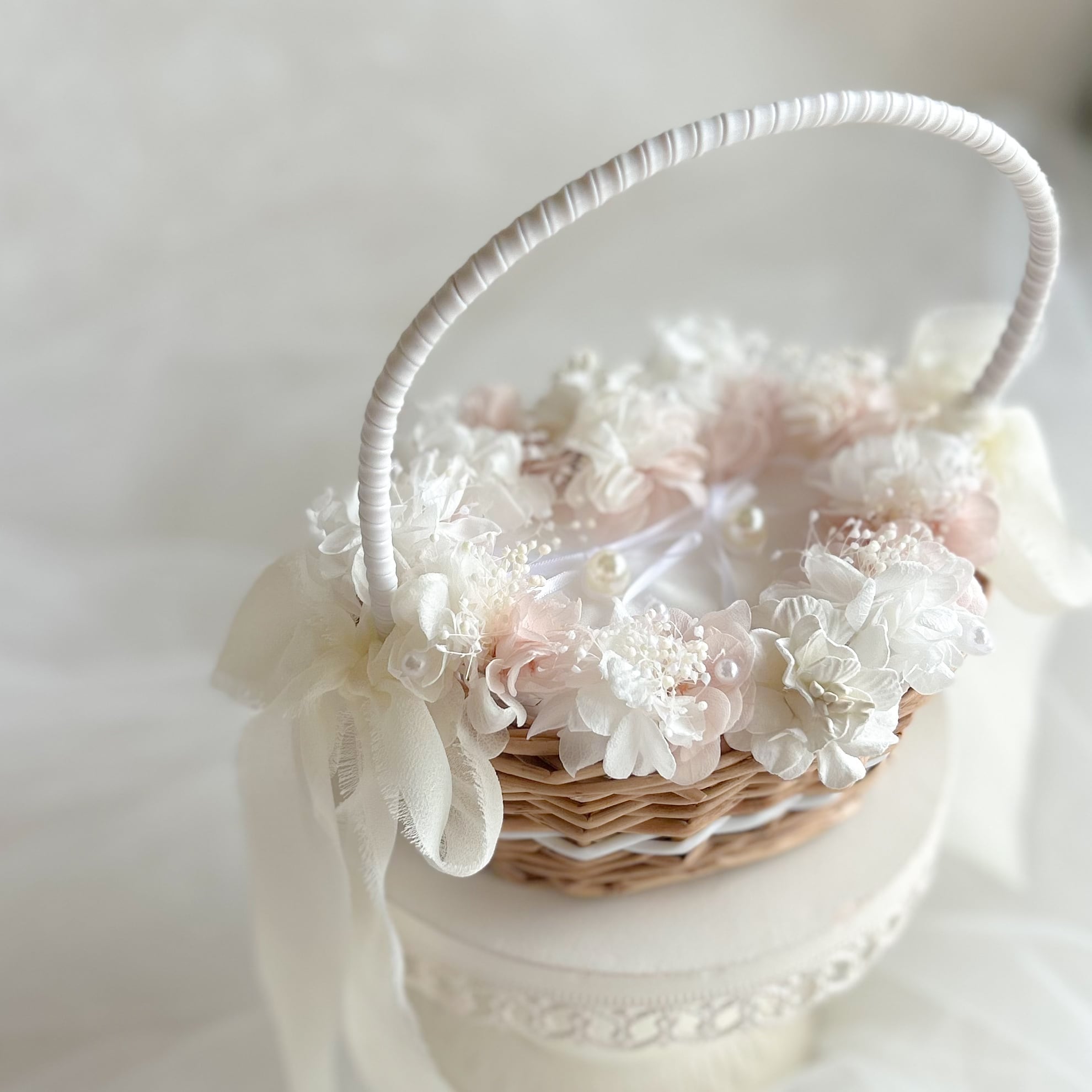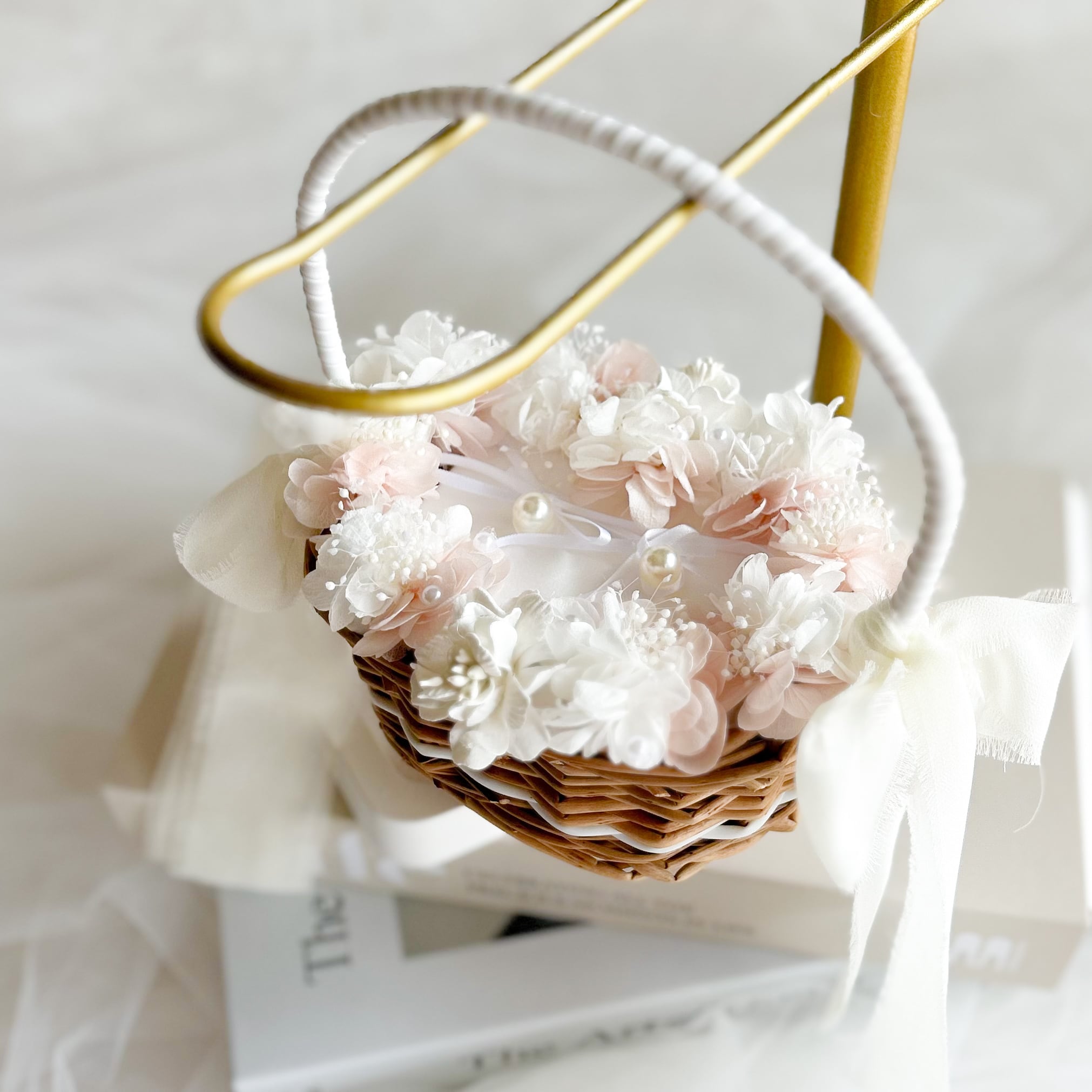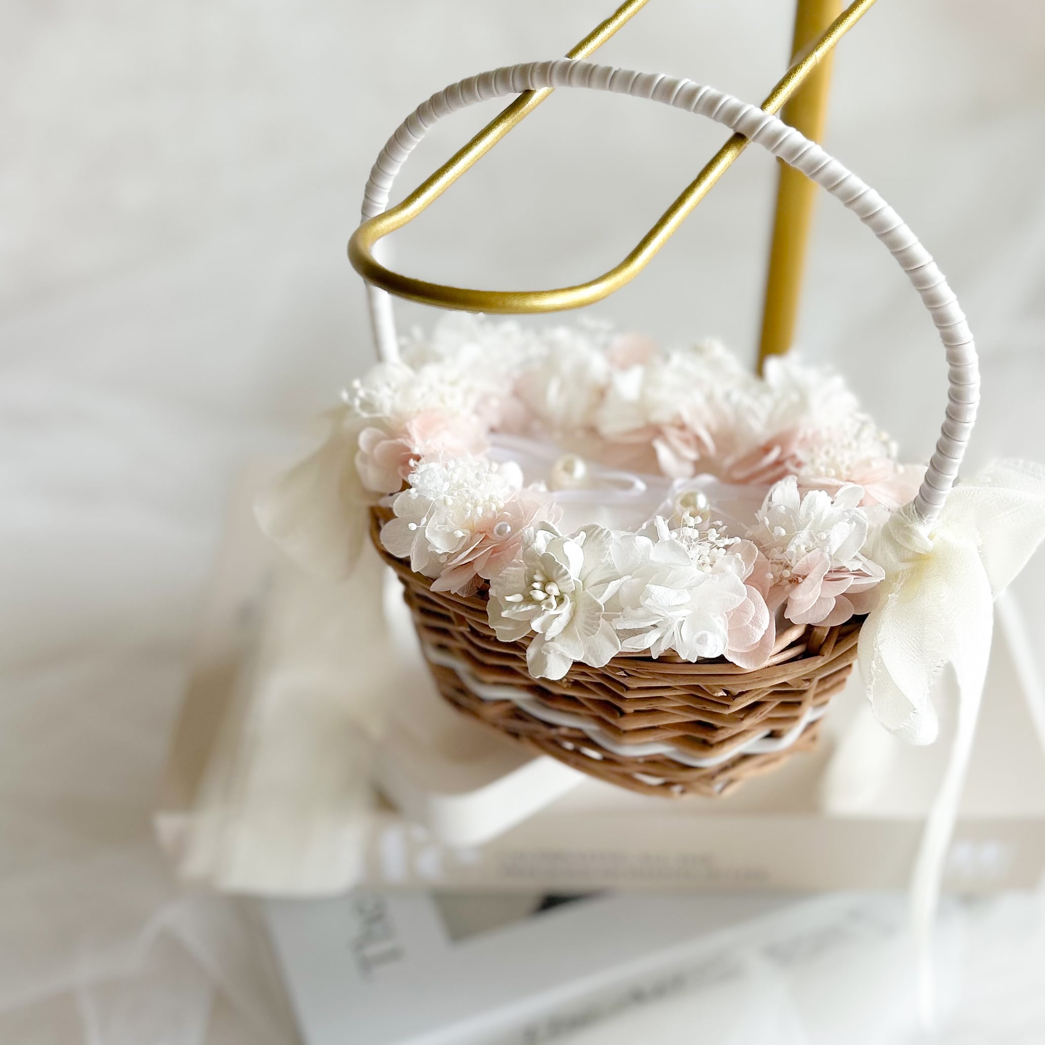 Oval pink ring pillow basket (プリザーブドフラワーメイン)
