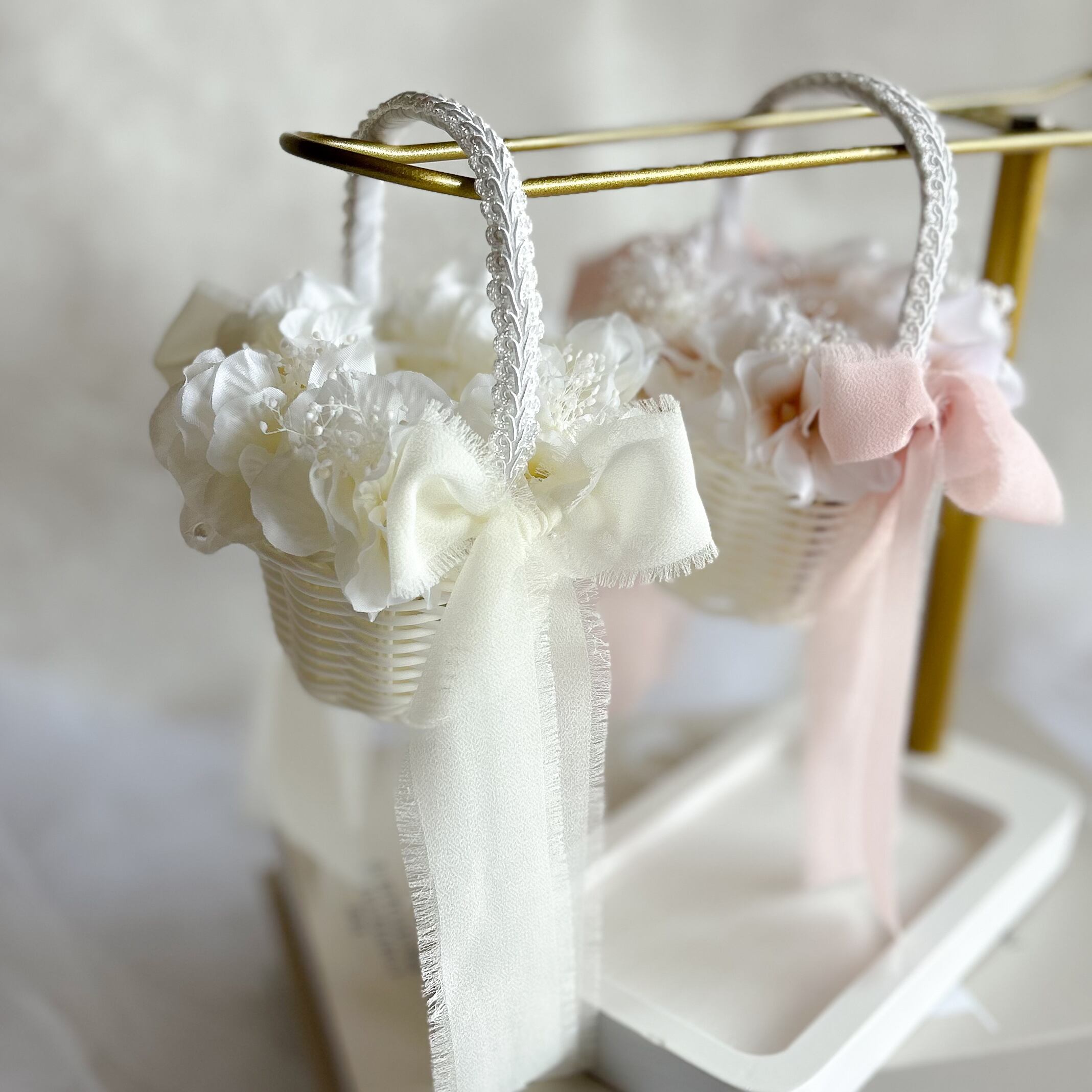 紫陽花とプリザーブドフラワーの霞草を添えて