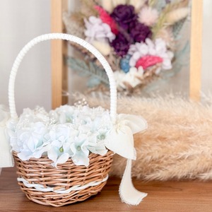 霞草を添えてパールをちらしたリングピローかご。