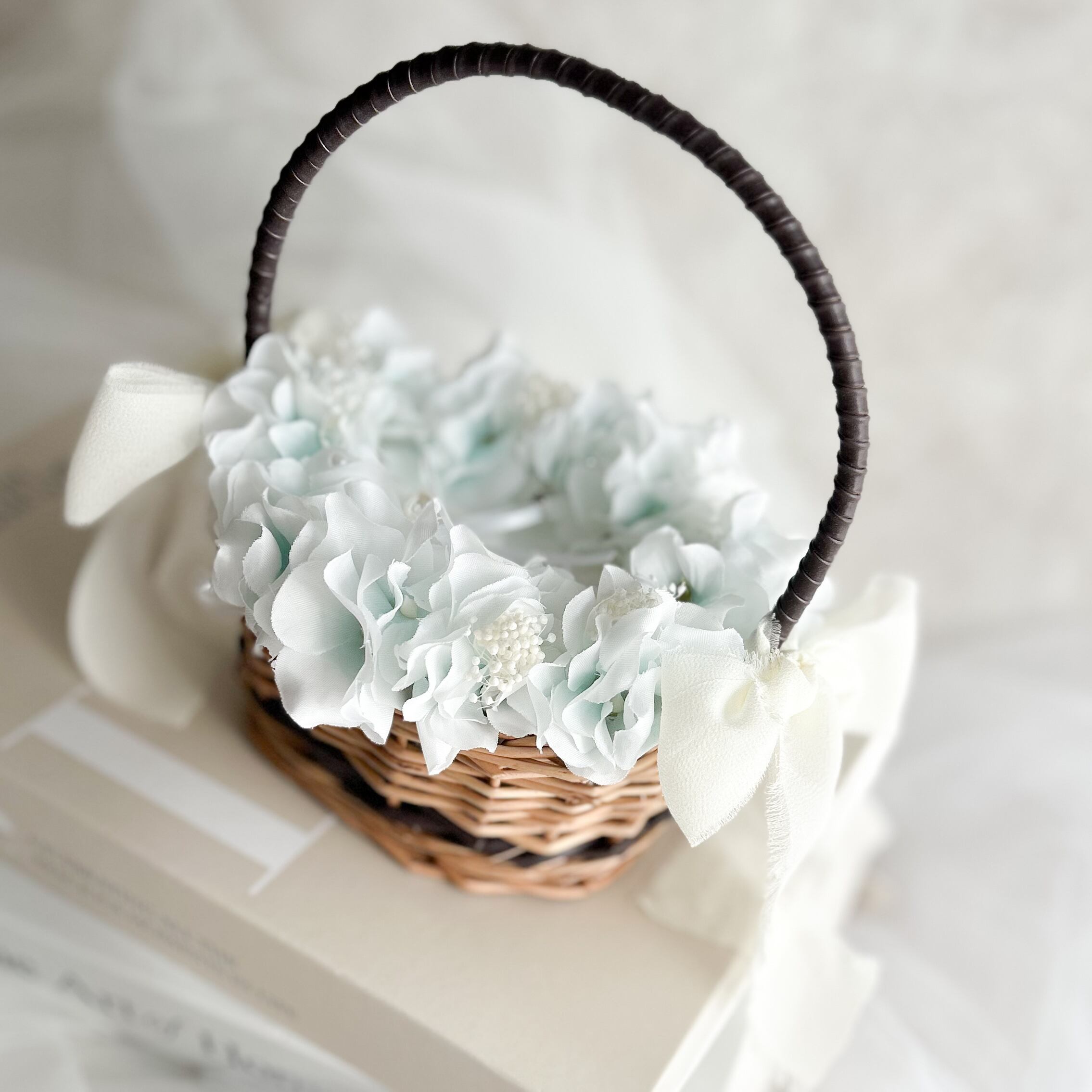 ふんわりと造花の紫陽花とプリザーブドフラワーの
