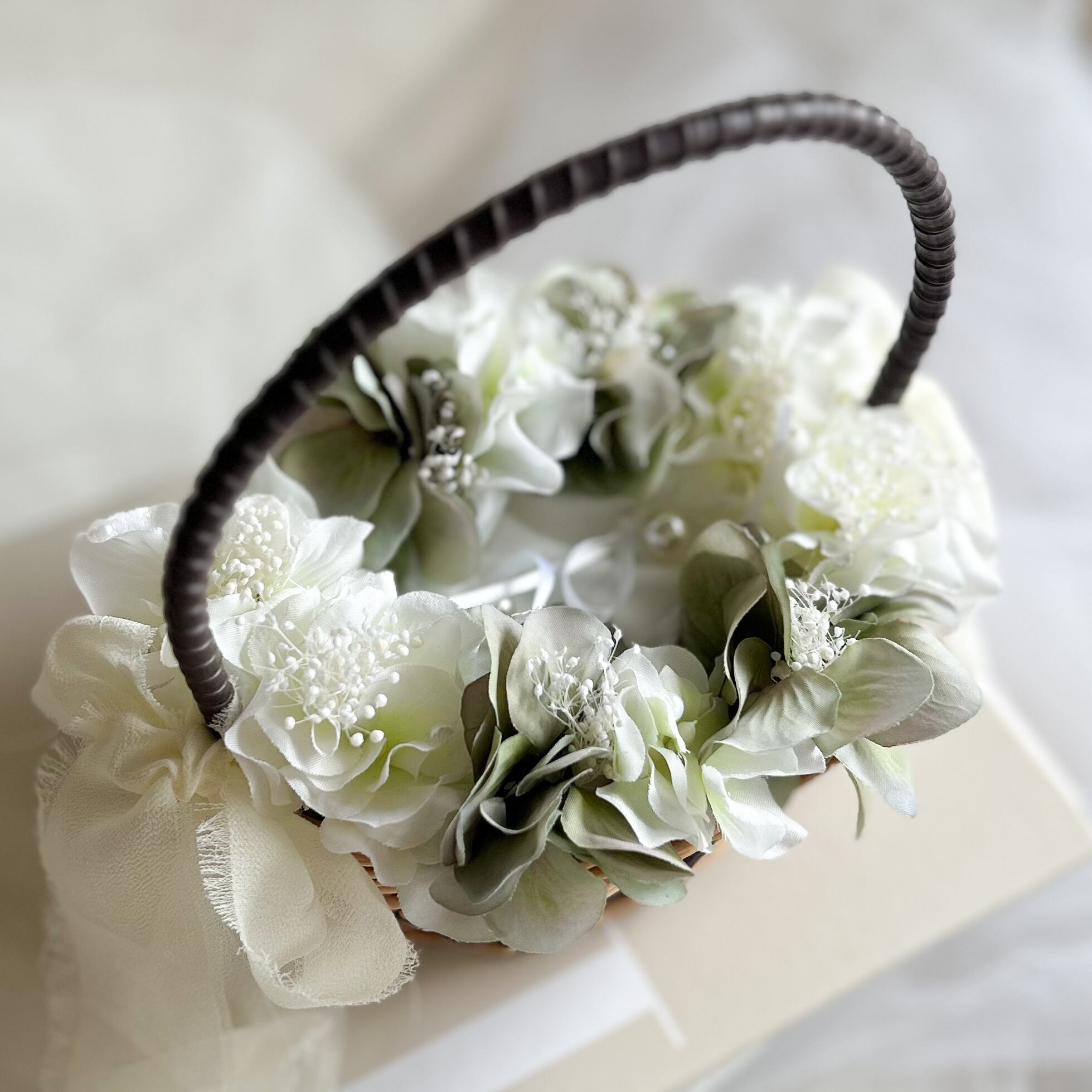 ふんわりと造花の紫陽花とプリザーブドフラワーの