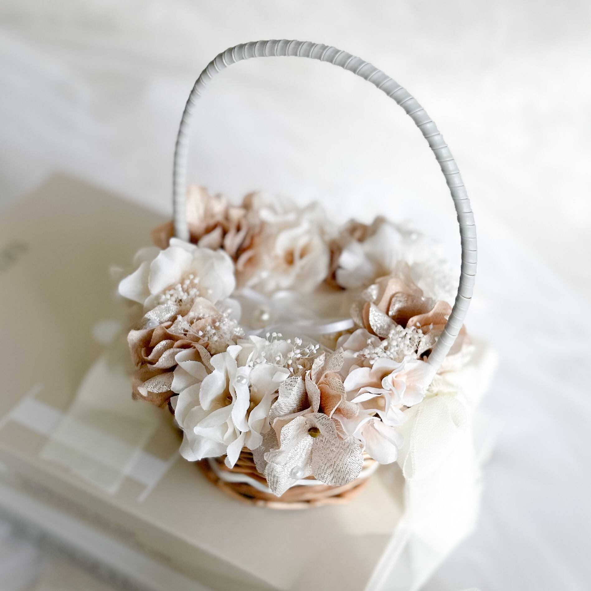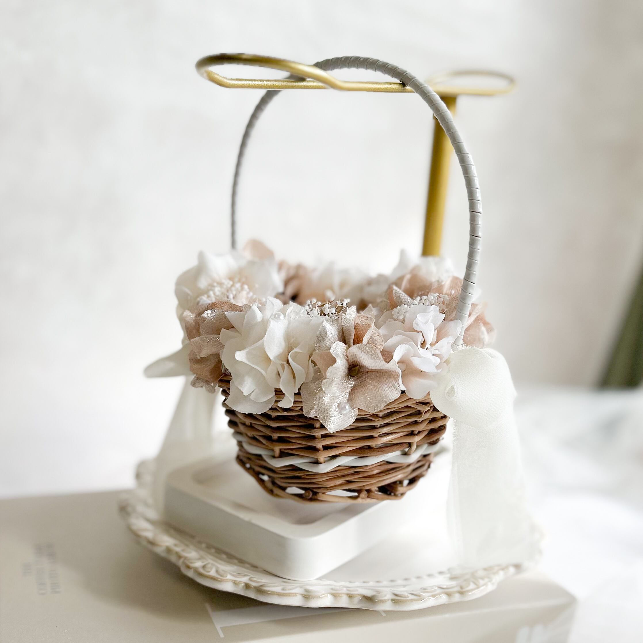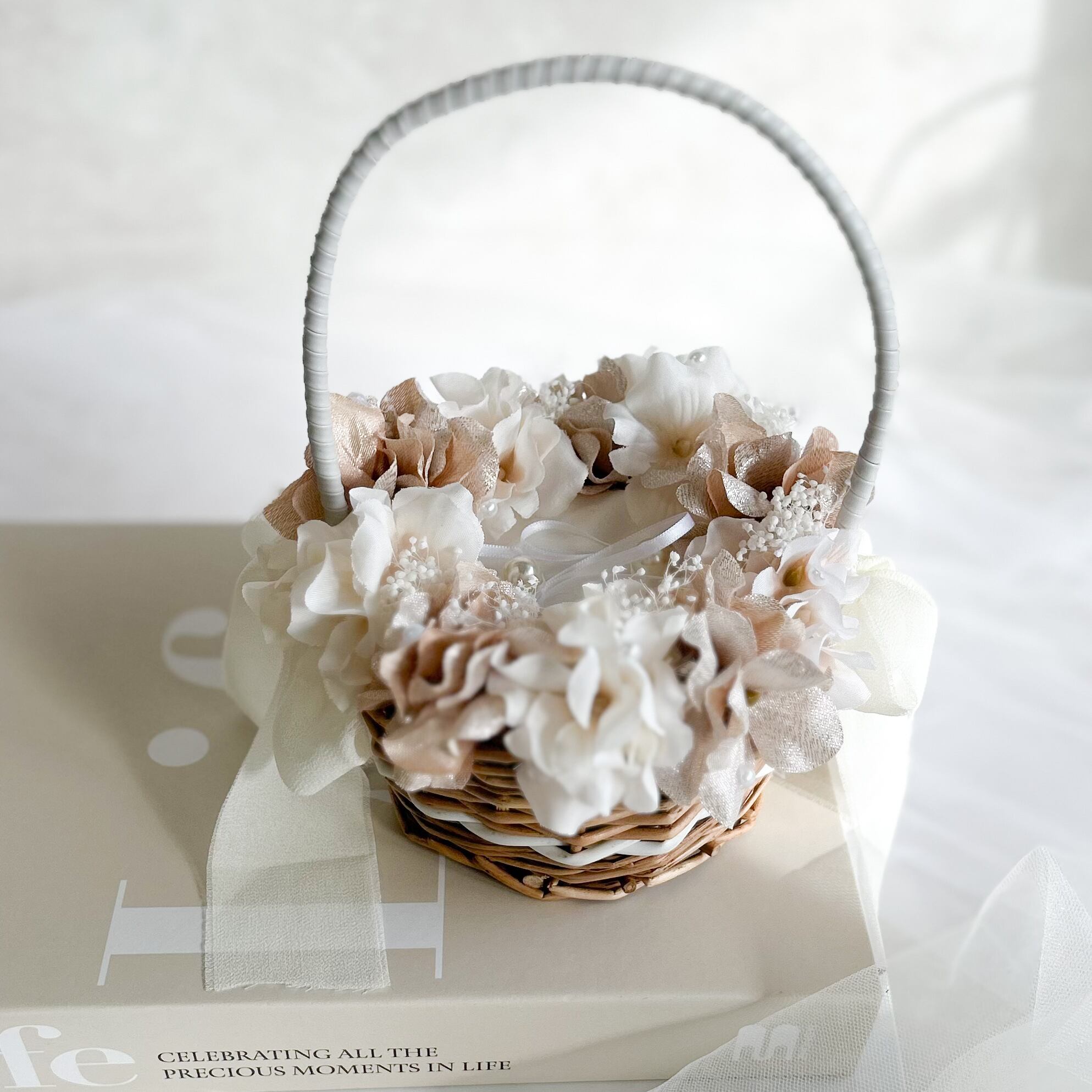 ふんわりとラメピンク×オフホワイトの造花紫陽花と