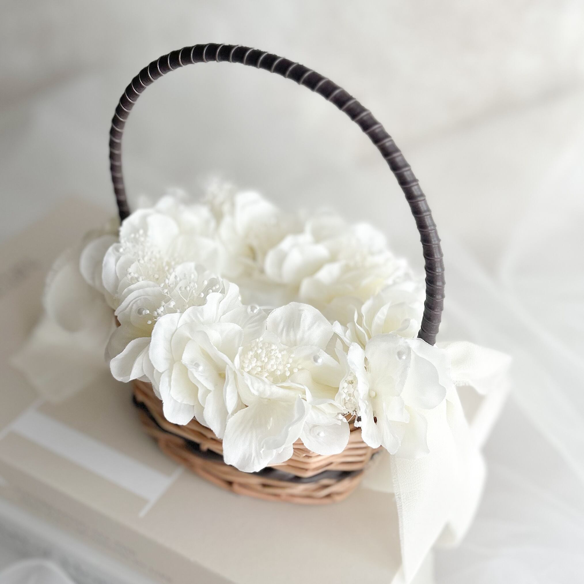 ふんわりと造花の紫陽花とプリザーブドフラワーの