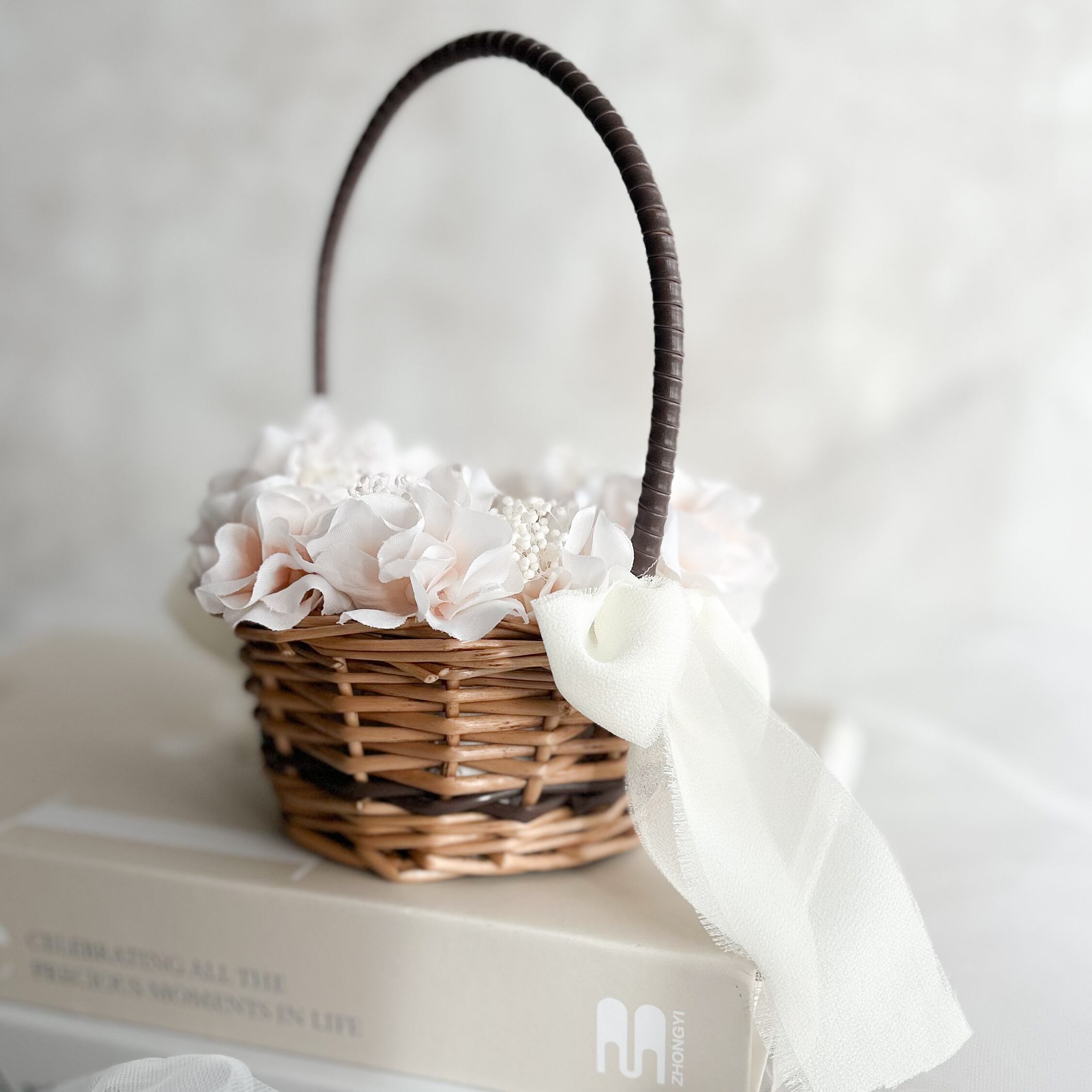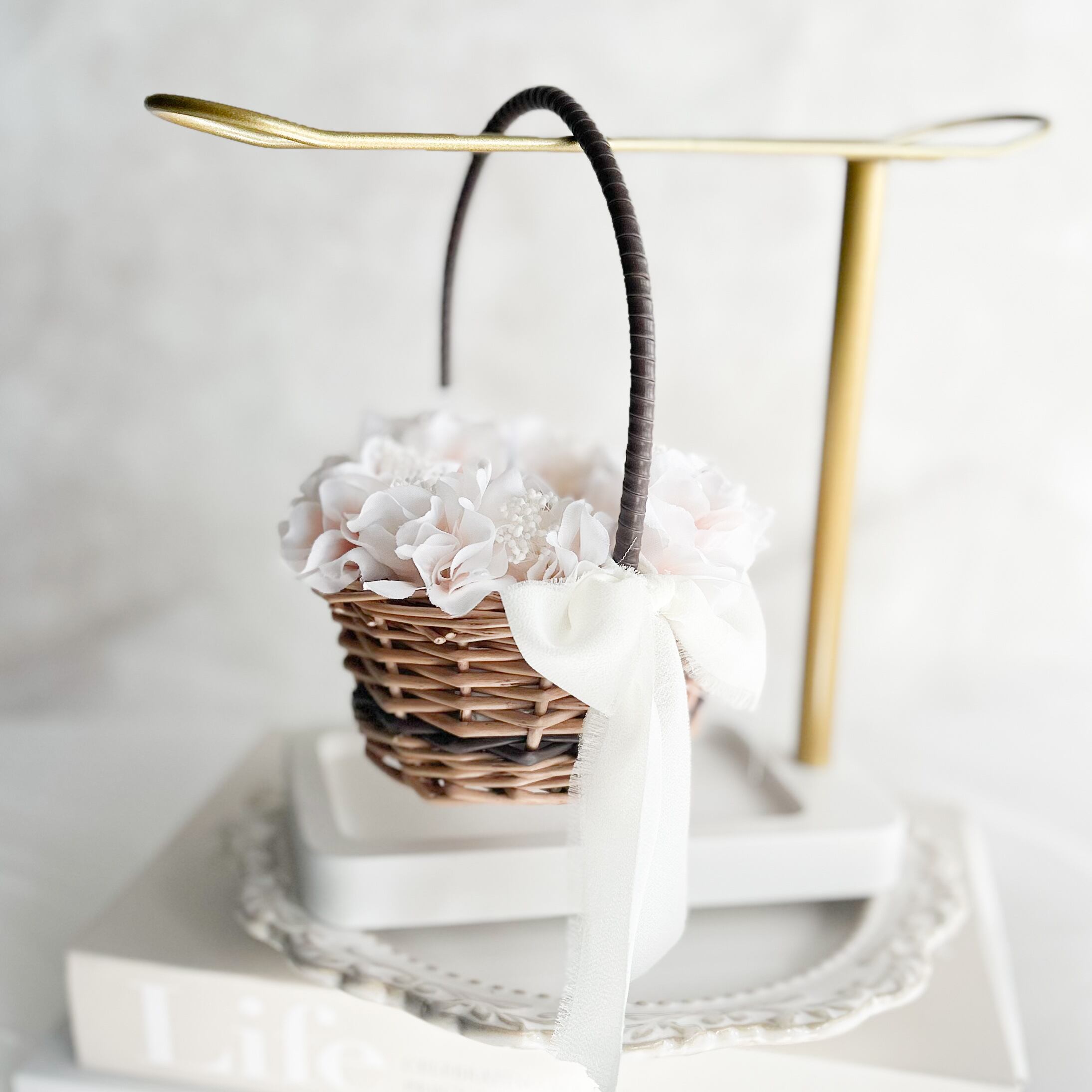 Circle baby pink ring pillow (造花/brown)